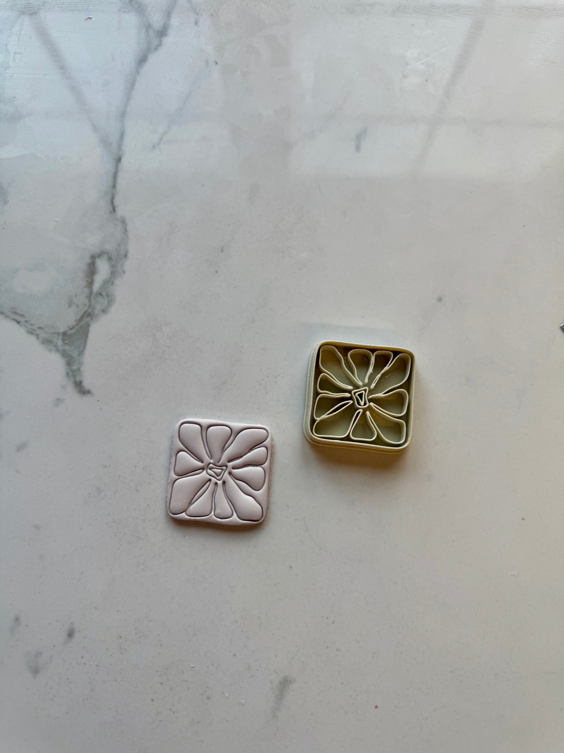 How to use WMB polymer clay cutters: we recommend using cornstarch when using detailed cutters. You can gently dust some directly onto your clay slab, or dip your clay cutter into the cornstarch and tap off the excess. Press your clay cutter into your clay, applying a good amount of pressure to ensure the best cut. Gently lift and wiggle your cutter out of the clay to not disturb the shape.