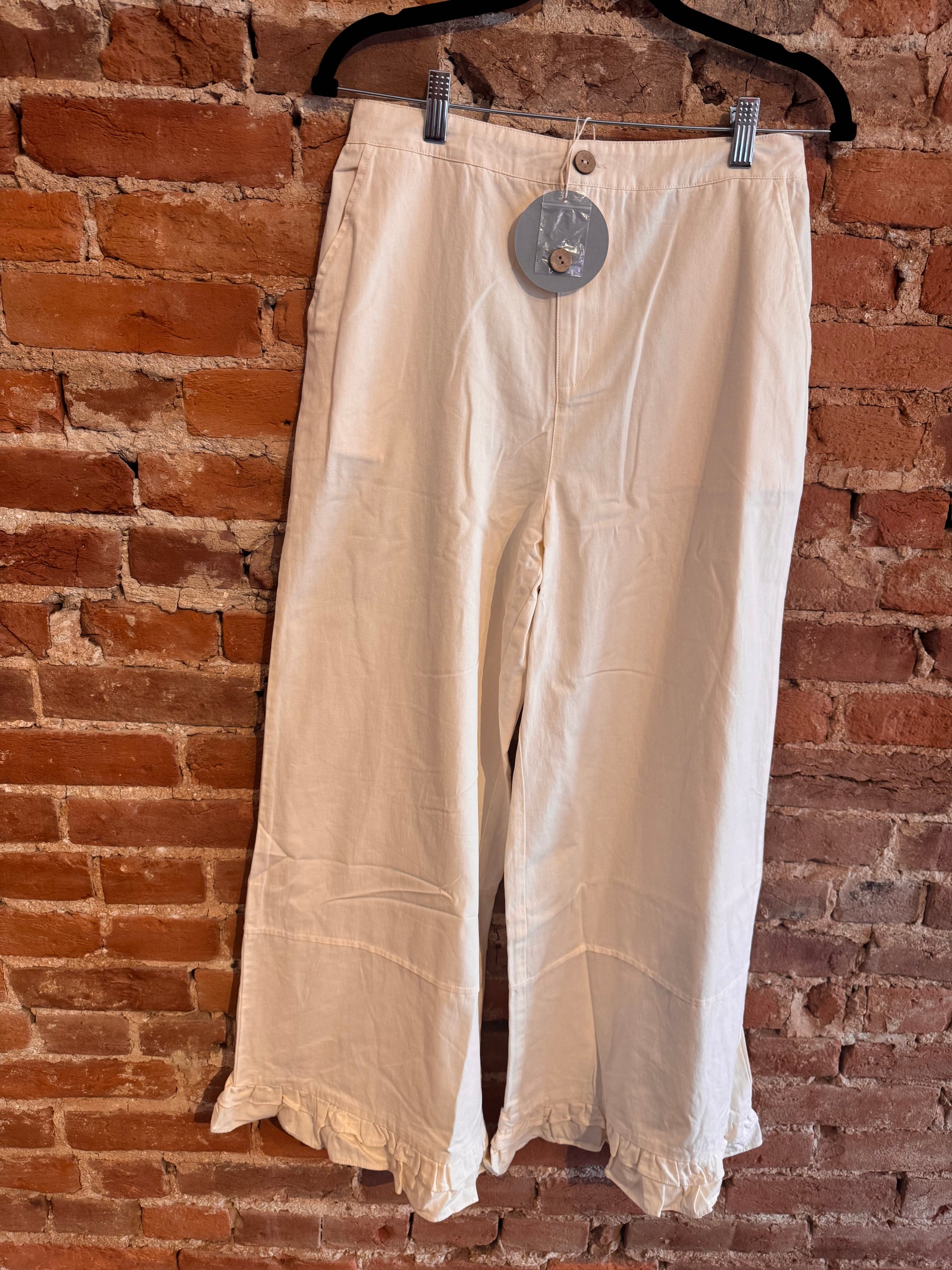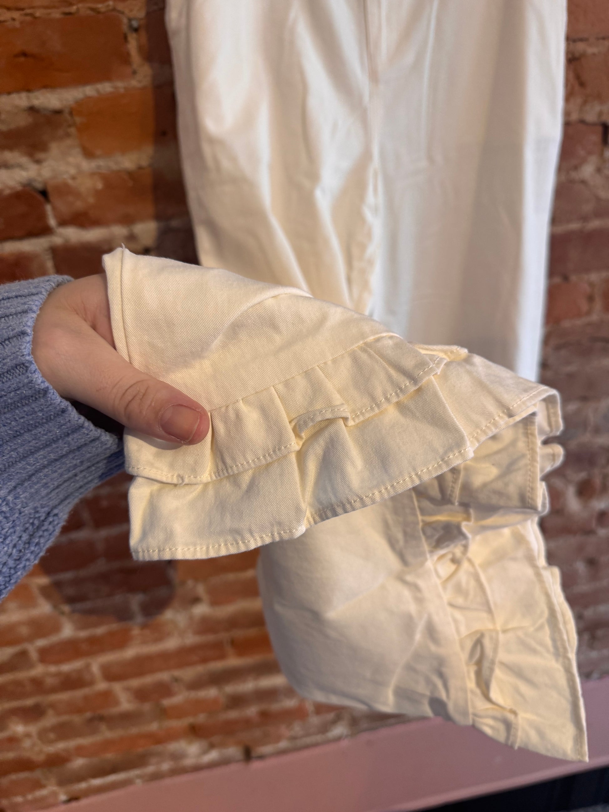 White Denim Ruffle Pants